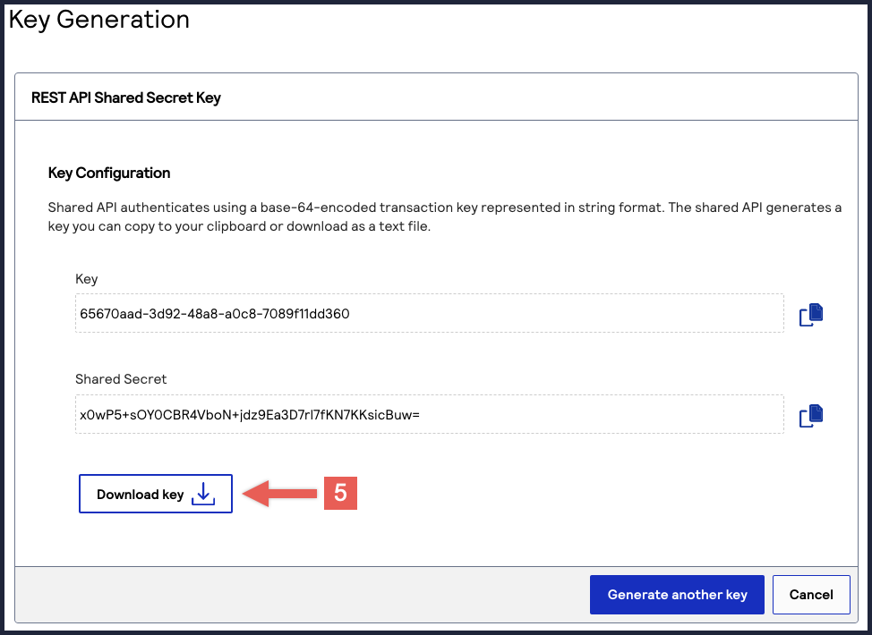 The REST API Shared Secret Key page appears. - ClickDownload key